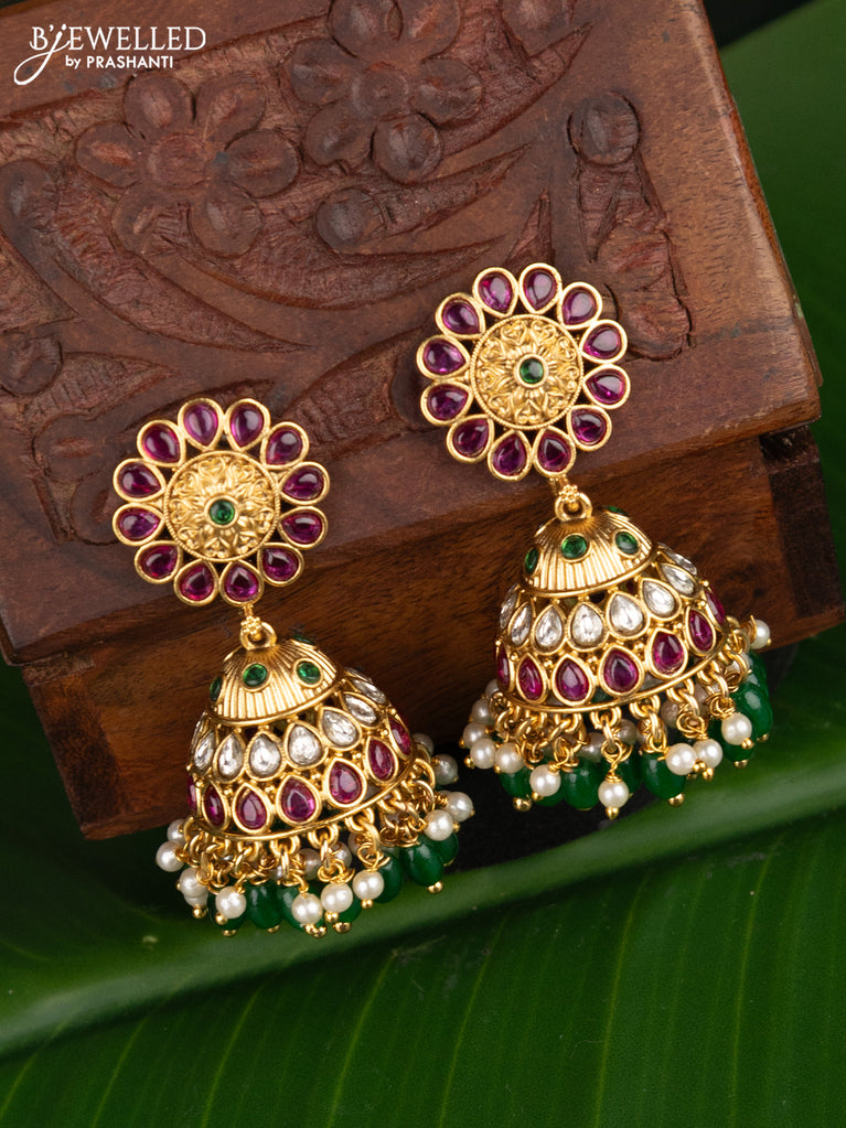 Antique jhumka floral design with kemp & cz stones and beads hangings