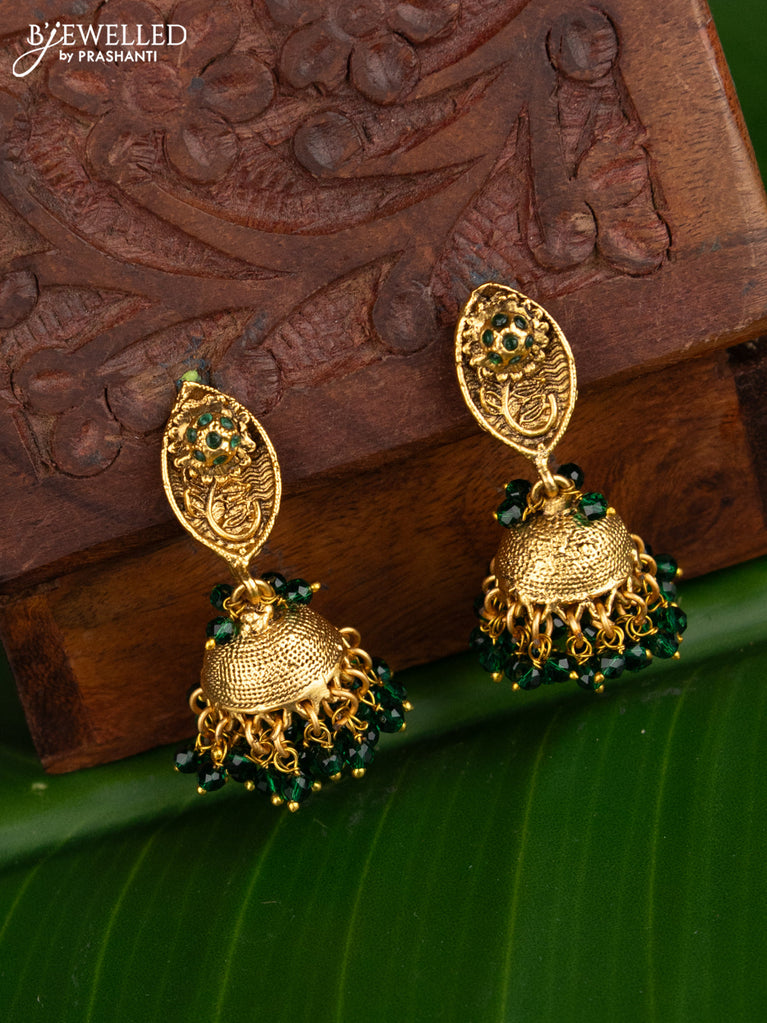 Antique jhumka floral design with emerald stones and crystal beads hangings