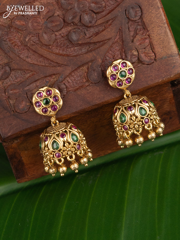Antique jhumka floral design with kemp and golden beads hangings