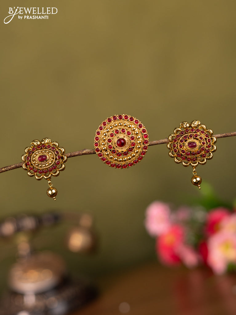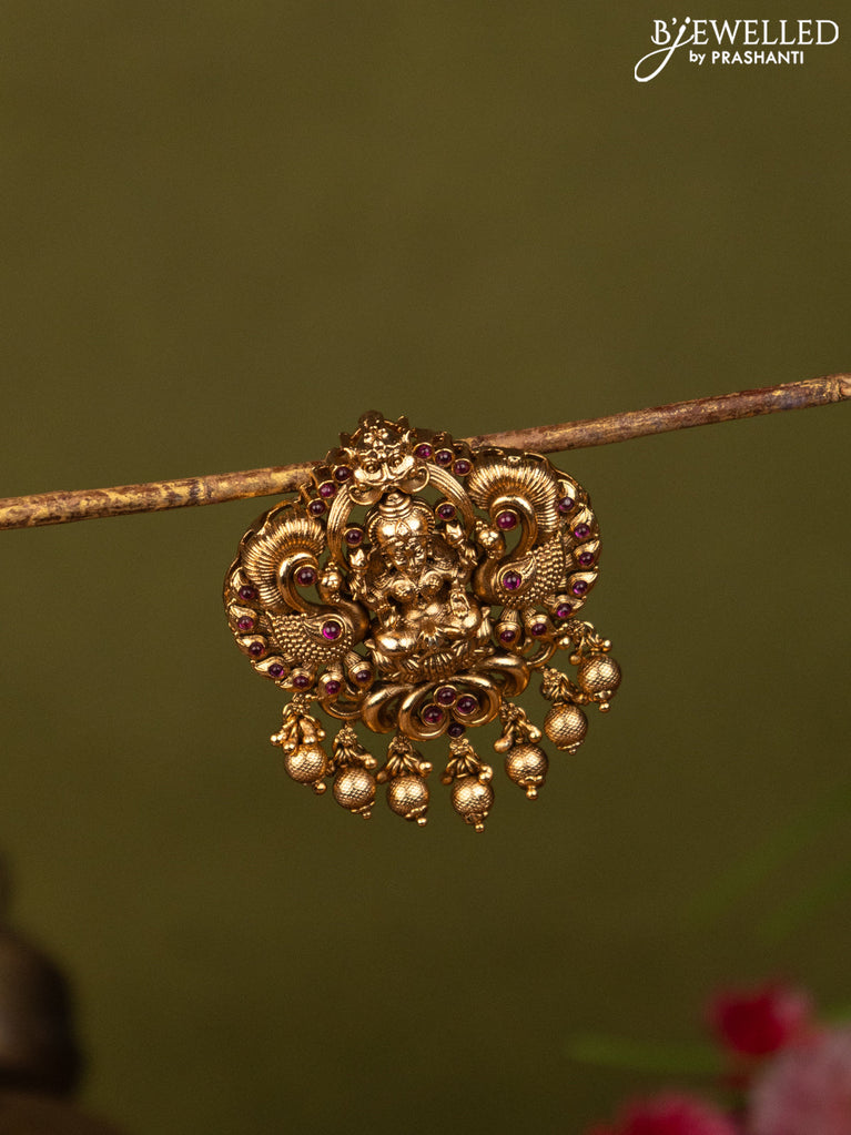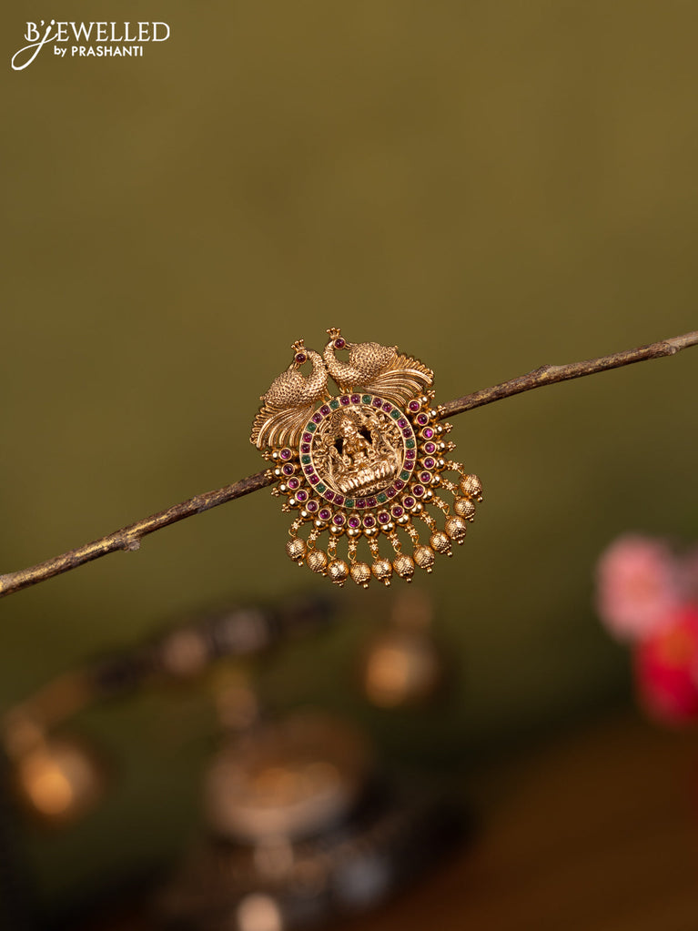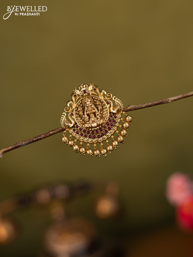 Antique jada billai lakshmi design with pink kemp stones and golden beads hanging