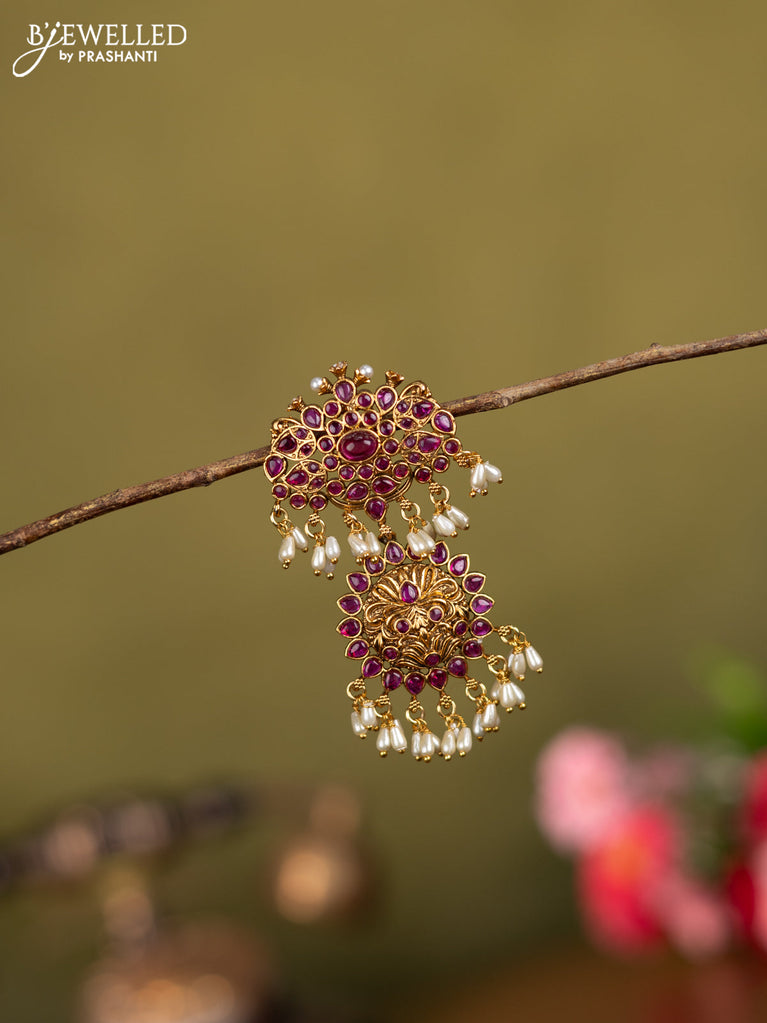 Antique jada billai peacock design with pink kemp stones and pearl hangings