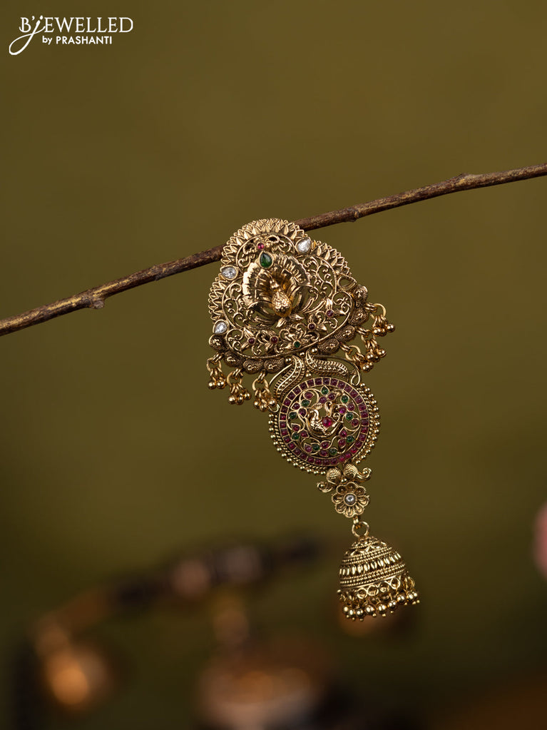 Antique jada billai peacock design with kemp stones and golden beads hanging
