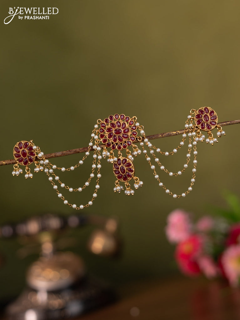 Antique jada billai with pink kemp stones and pearl hangings