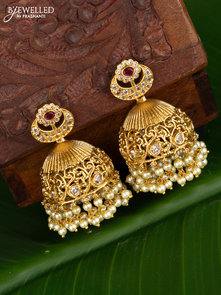 Antique jhumkas with kemp stone and pearl hangings