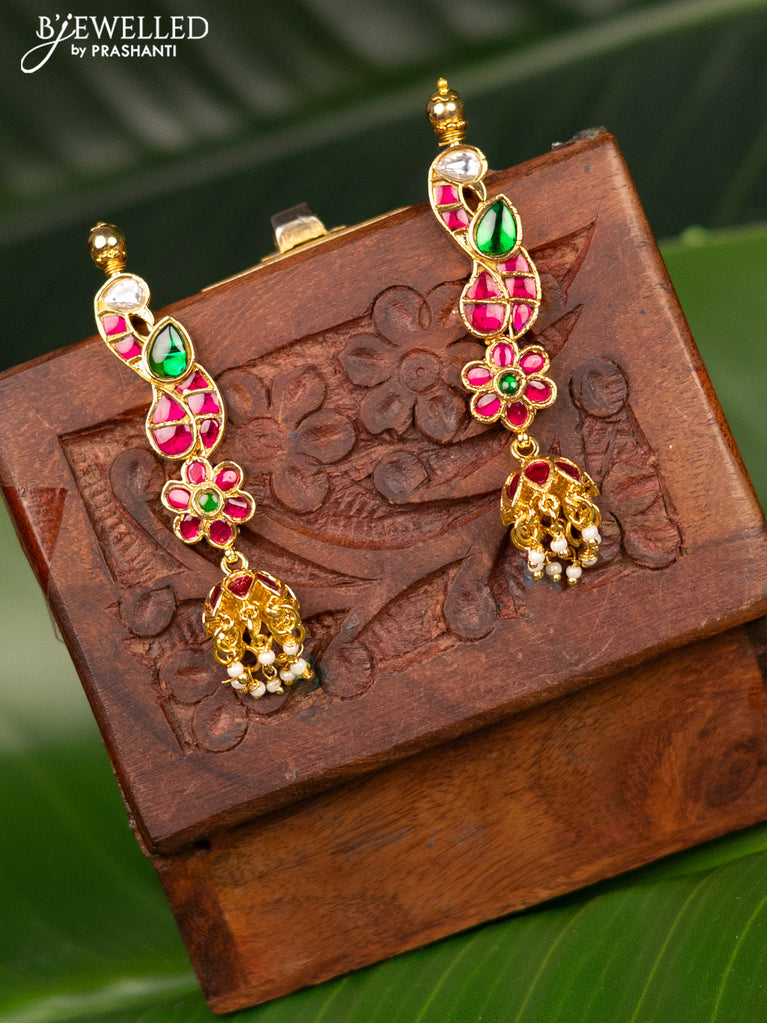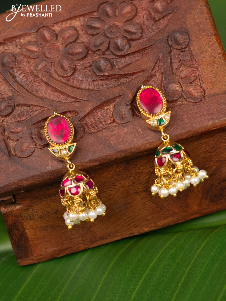 Antique screw type jhumka with jadau kundan stones and pearl hangings