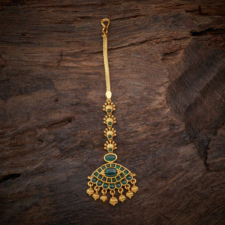 Green Bridesmaid Mang Tikka Embalished with stones One of the most antique jewelries of all time, a magnificent piece of Silver Temple Maang Tikka jewellery. Its flawless green color makes it super-gorgeous and dazzling. It is accompanied by an awe-inspiring design and the stones on it are undoubtedly the finest center of attraction. Time for you to steal the show by adding this mang tikka to your vibrant outfit.
