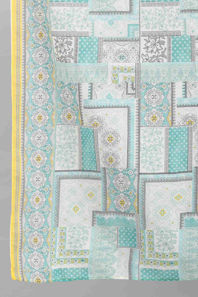 A captivating print featuring a vibrant array of flowers enriches the saree and adds a hint of subtle shimmer featuring delicate foil prints along the border. Tone-on-tone stripes on the body of the saree is an absolute visual treat.