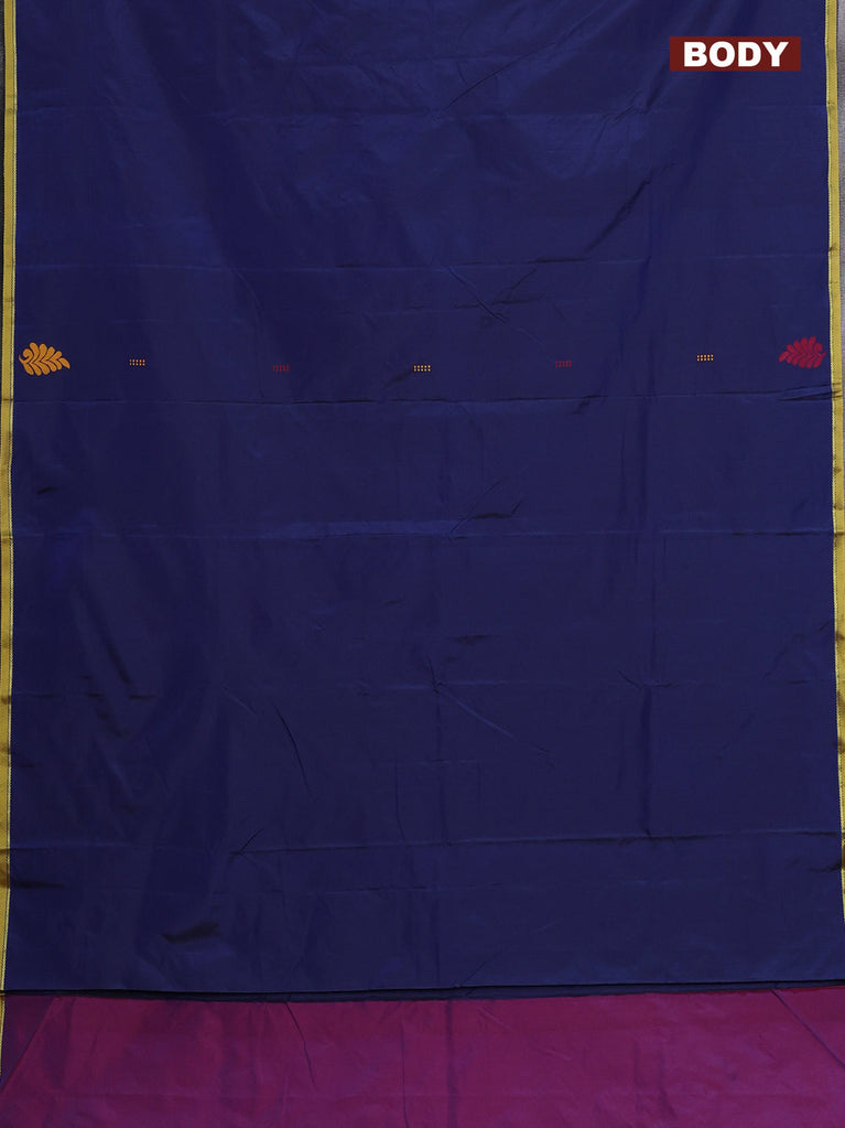 Arani semi silk saree dark blue with rudhraksha & paisley zari woven buttas and zari woven border