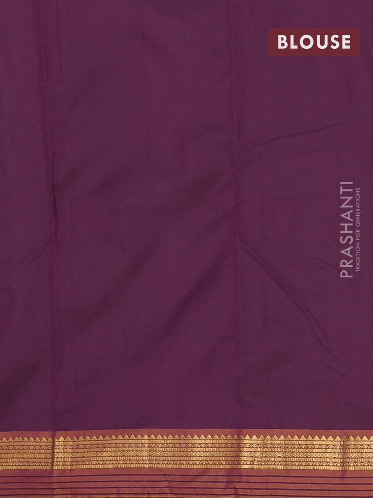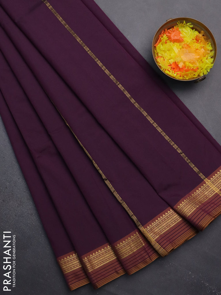 Arani semi silk saree deep purple and dark mustard with plain body and zari woven simple border