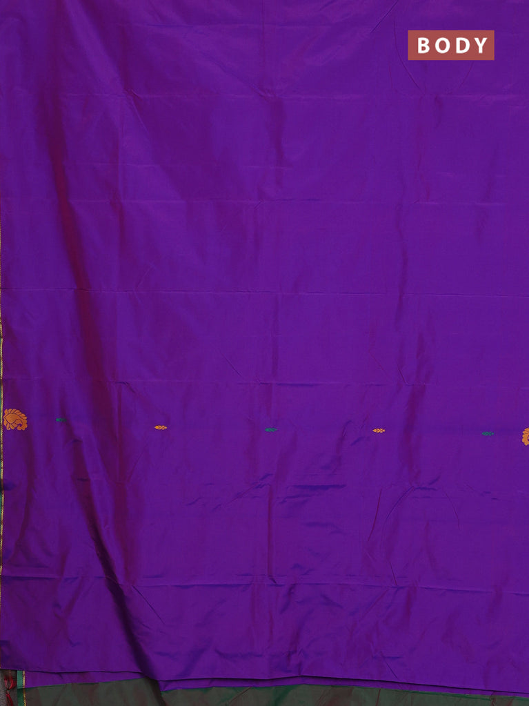 Arani semi silk saree deep purple and dual shade of green with thread woven buttas and thread woven butta border