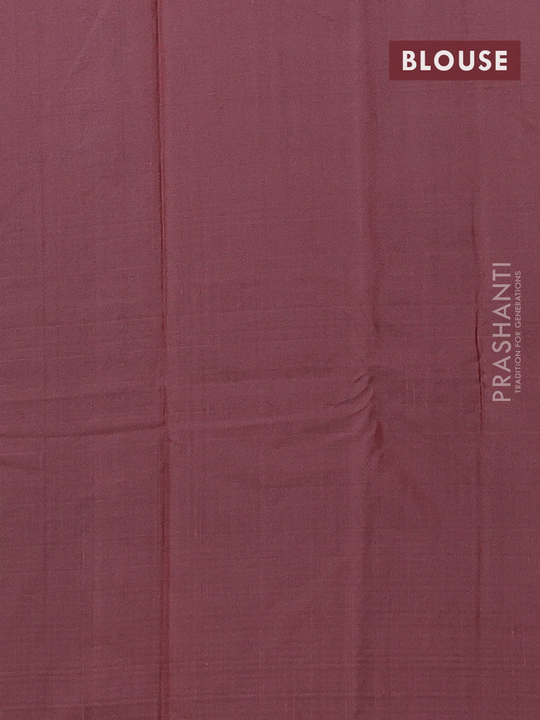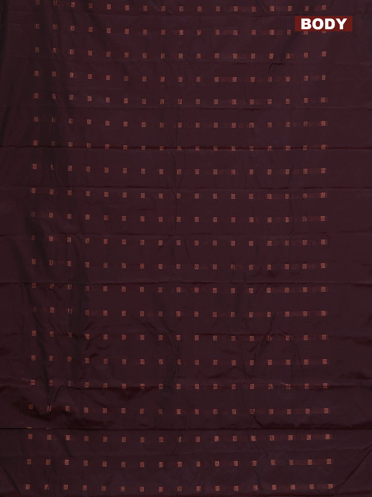 Arani semi silk saree deep jamun with copper zari woven buttas in borderless style