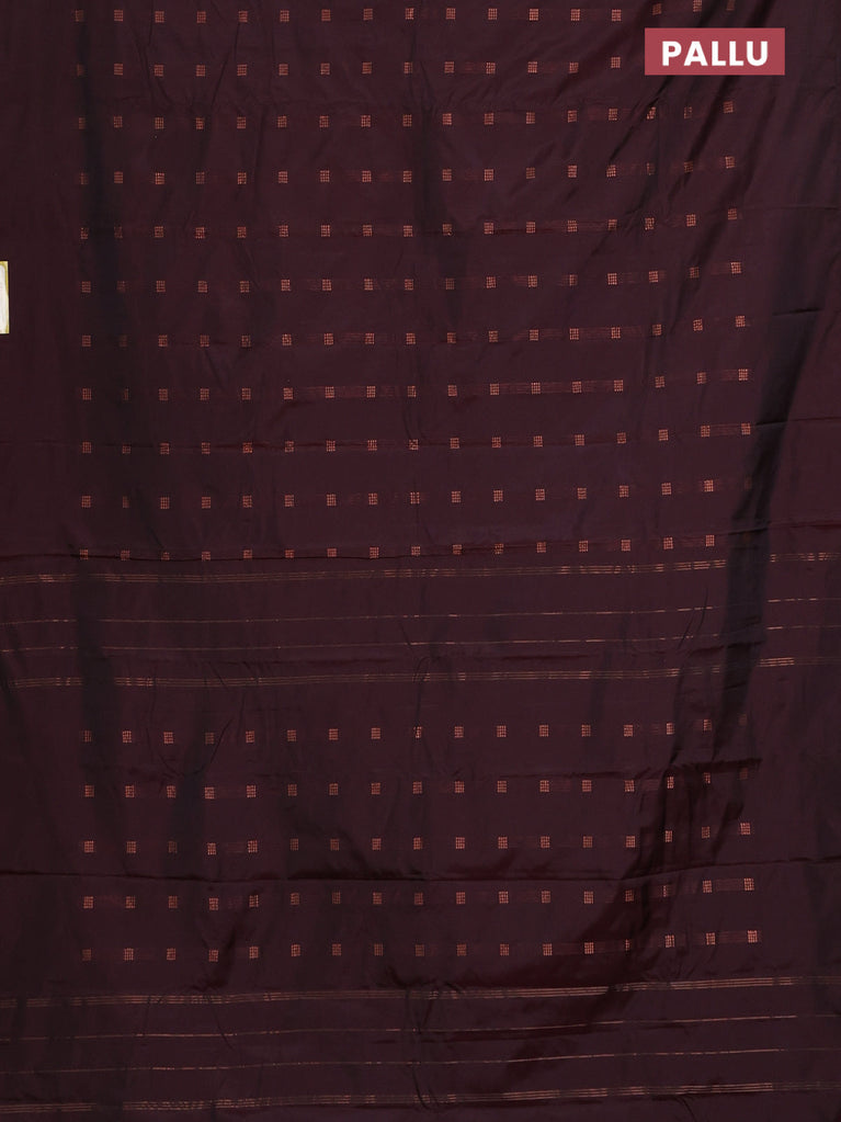 Arani semi silk saree dark purple and dark mustard with allover copper zari weaves and zari checked border