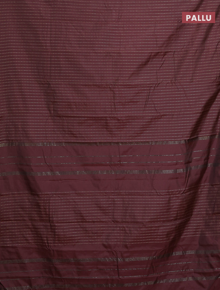 Arani semi silk saree deep maroon with allover silver zari weaves in borderless style