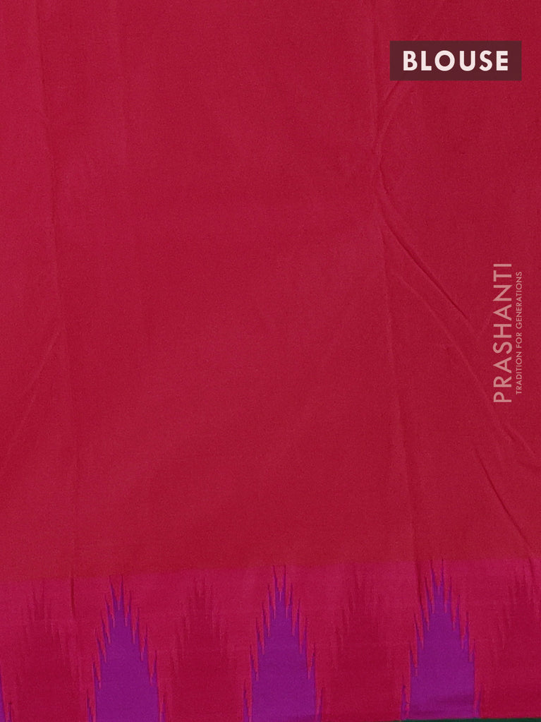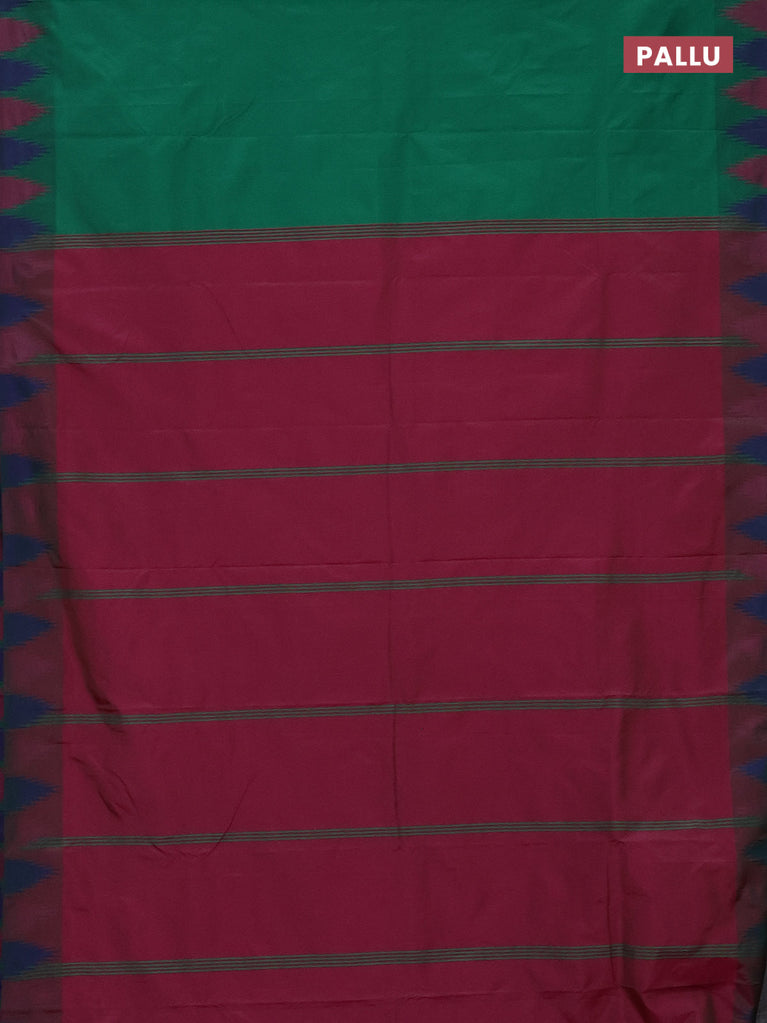 Arani semi silk saree green and dual shade of magenta pink with plain body and temple design border