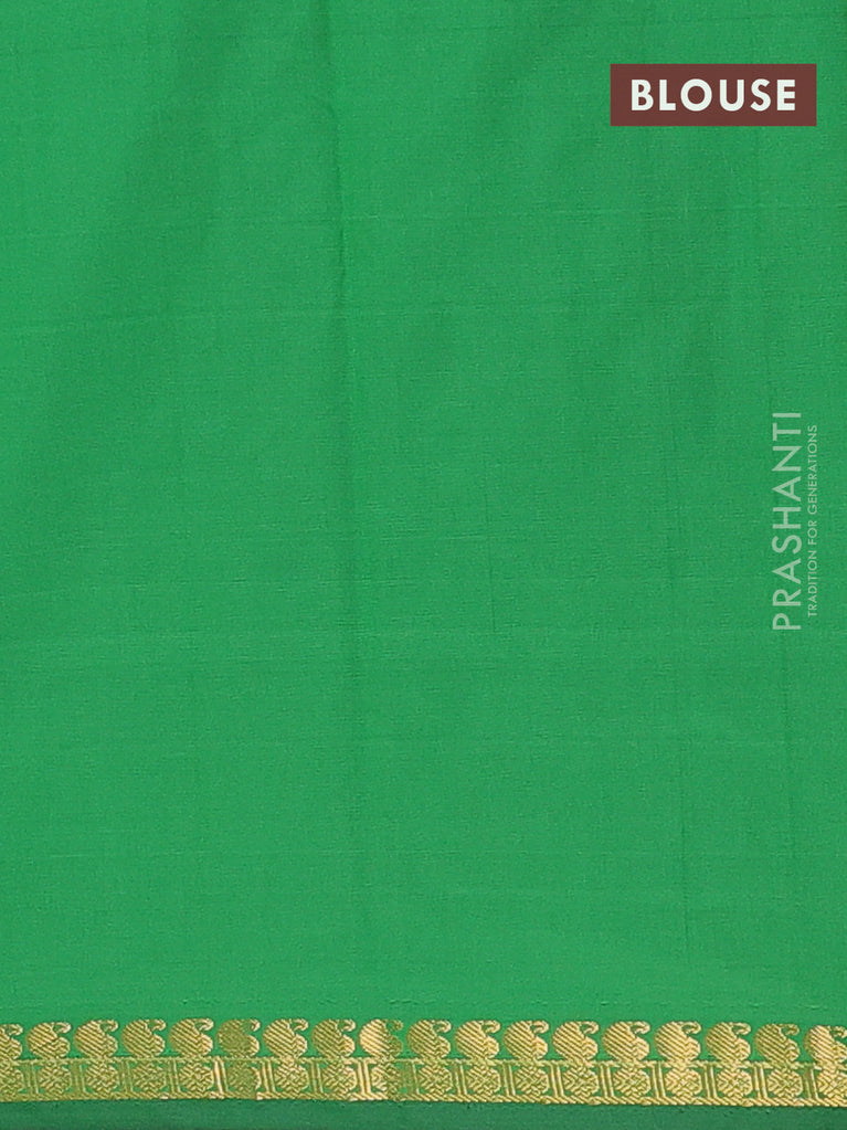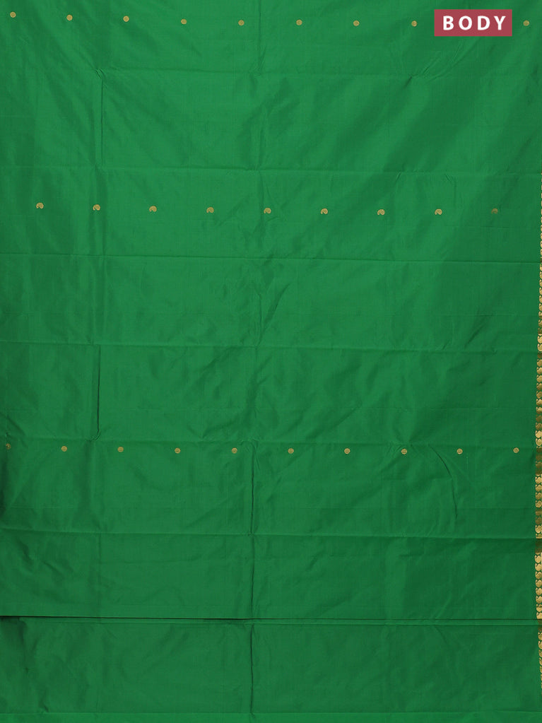 Arani semi silk saree green with copper zari woven buttas in borderless style