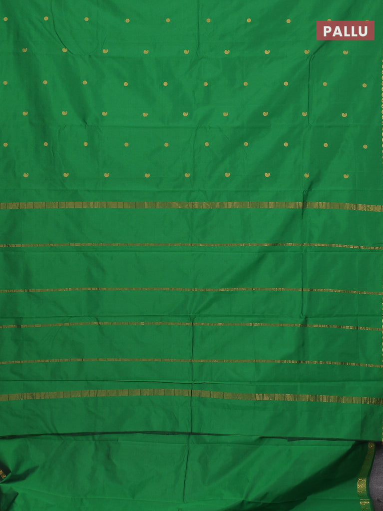Arani semi silk saree green with zari woven buttas and paisley zari woven butta border