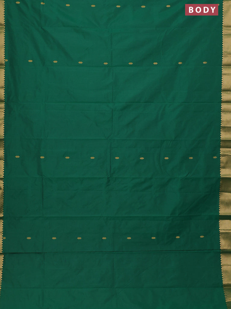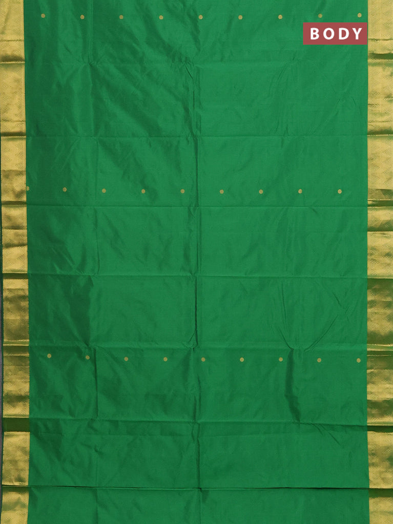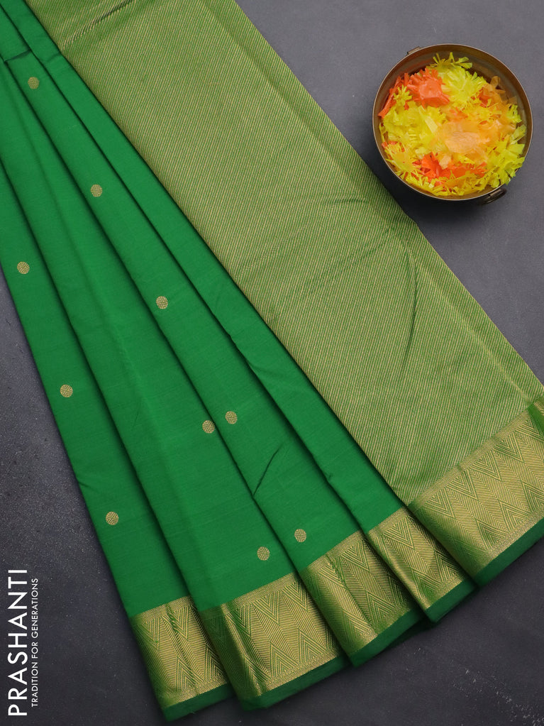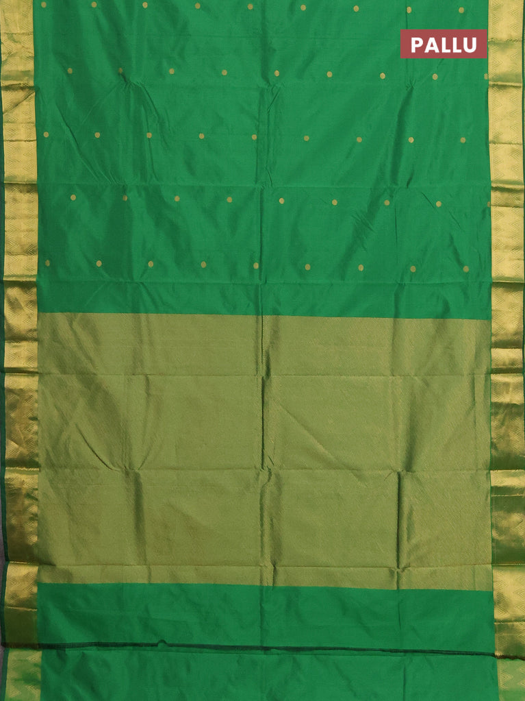Arani semi silk saree green with zari woven rudhraksha buttas and zari woven border