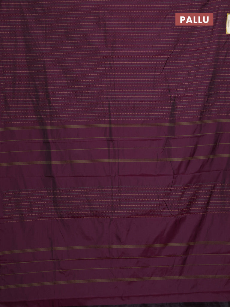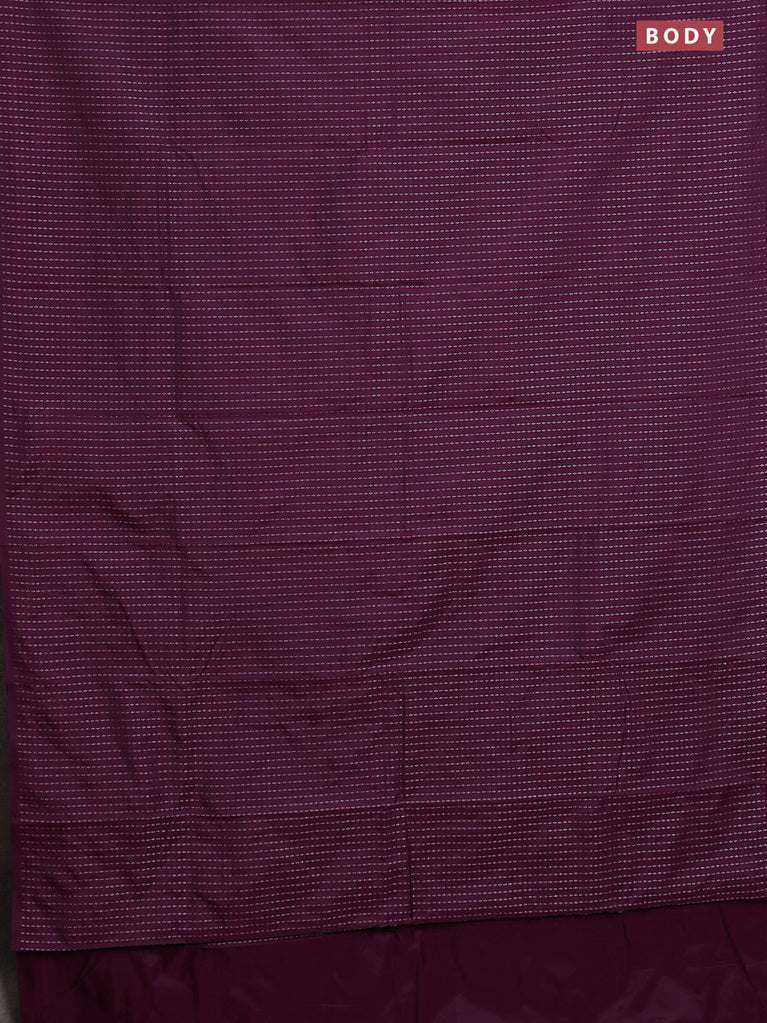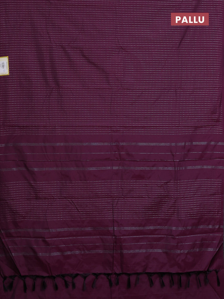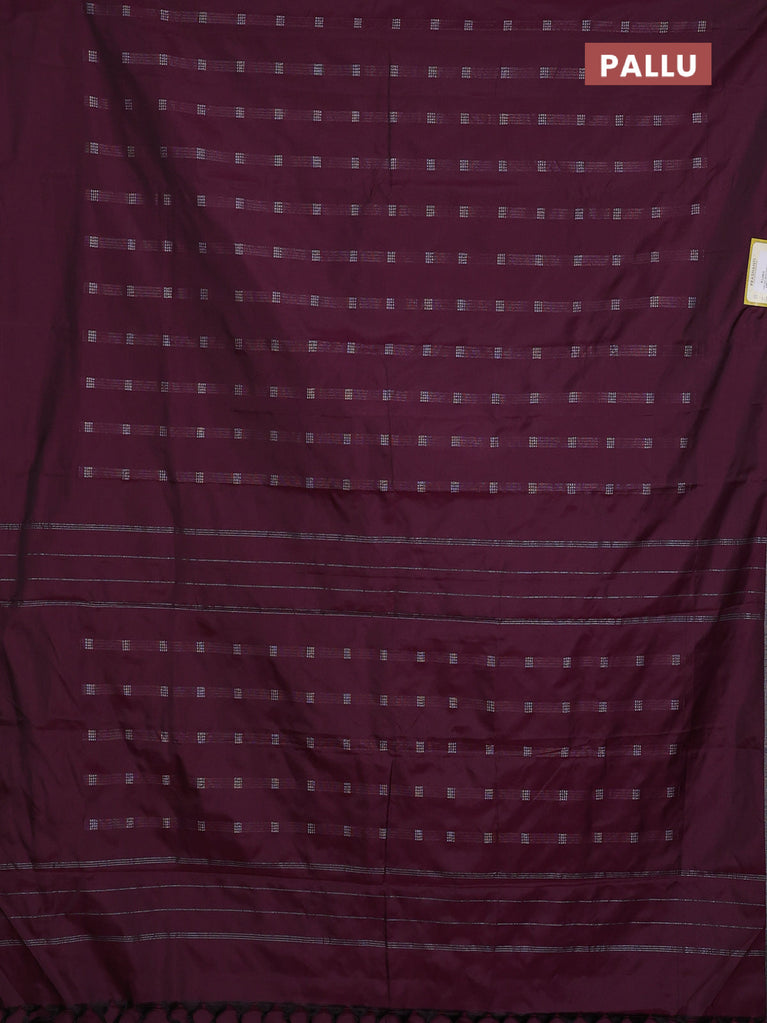 Arani semi silk saree wine shade with allover silver zari weaves in borderless style