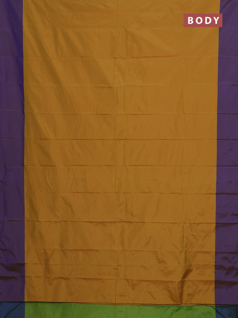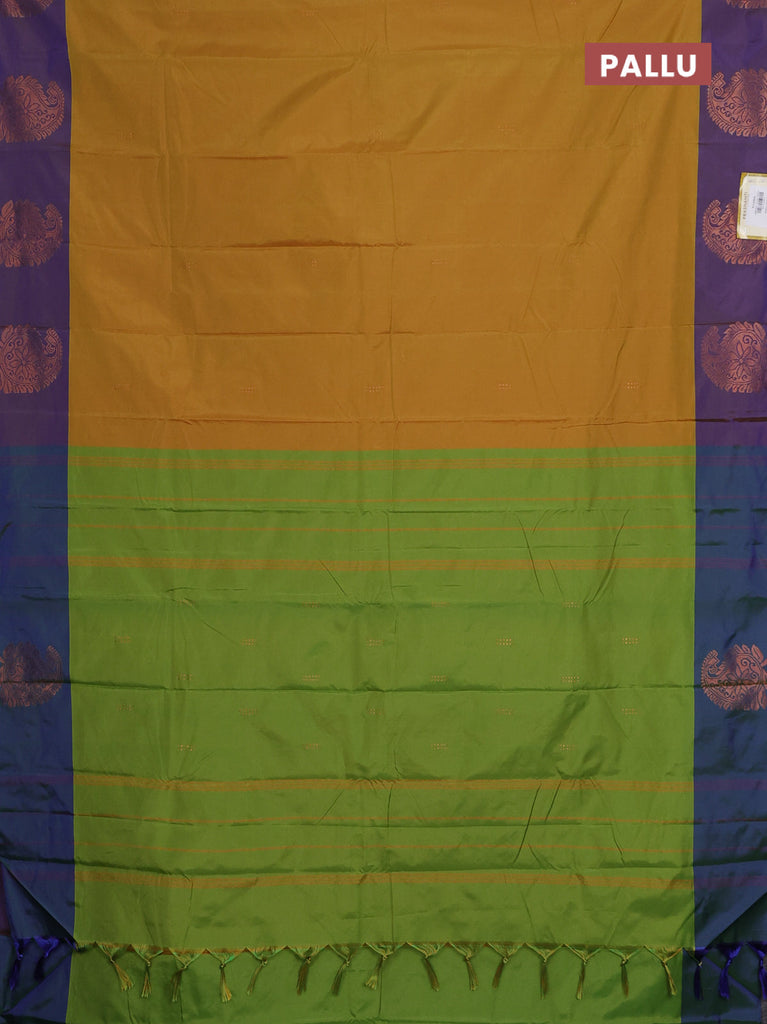 Arani semi silk saree yellow and violet with zari woven buttas and paisley zari woven butta border