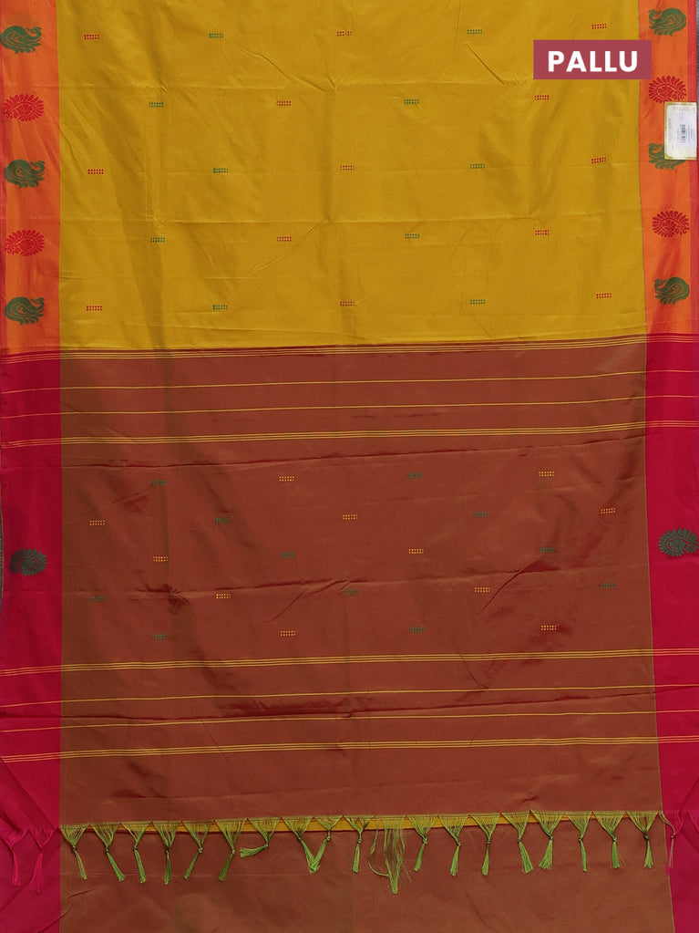Arani semi silk saree yellow and pink with thread woven buttas and thread woven butta border