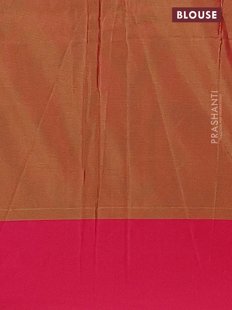 Arani semi silk saree violet and dual shade of green with copper zari woven buttas and zari woven butta border