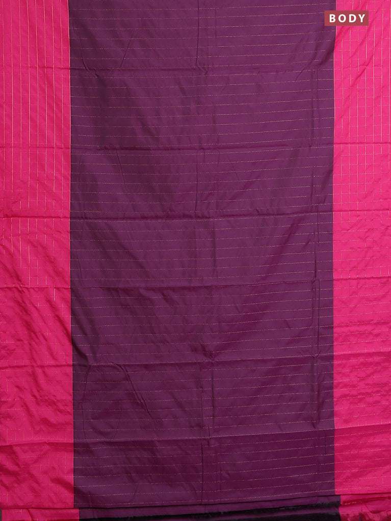 Arani semi silk saree wine shade and pink with allover copper zari weaves and zari checked border