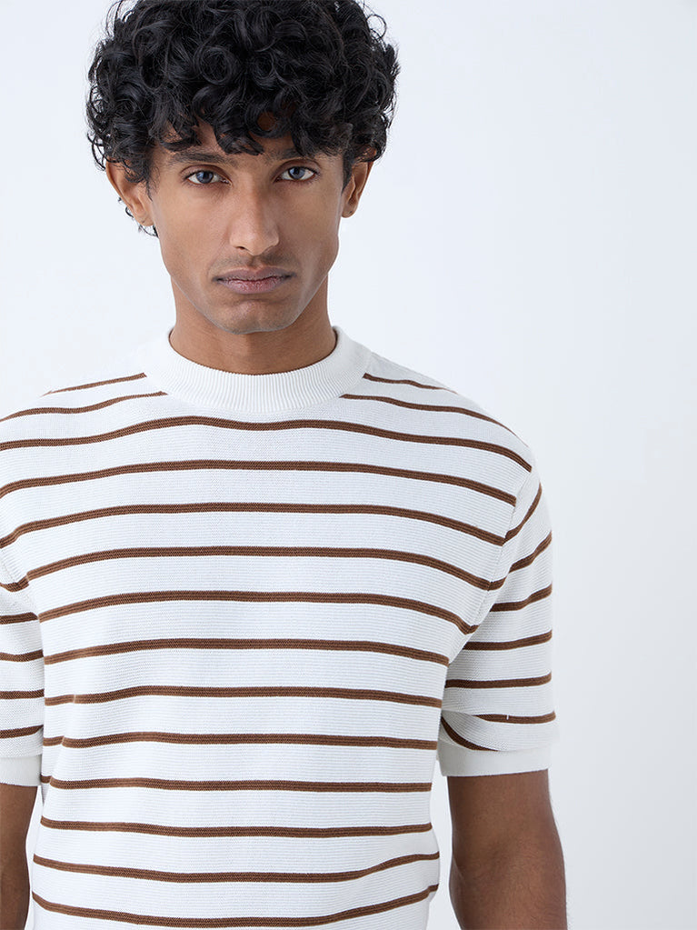 Ascot White Stripe Relaxed-Fit Cotton T-Shirt