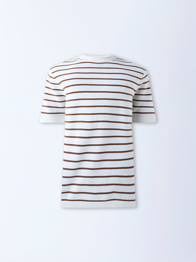 Ascot redefines laid-back luxury with this white striped sweater, crafted from a premium cotton-blend yarn for a soft, relaxed feel. The fine knit texture, round neckline, and easy fit make it an effortless piece for layering through cooler days.