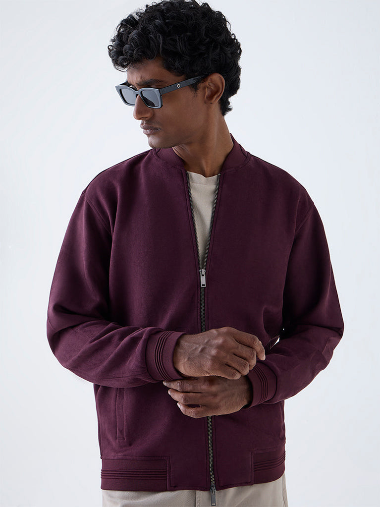 This wine jacket from Ascot is defined by a smooth suede exterior that gives the silhouette a sophisticated edge. Detailed with a mock collar, a zipper front and full sleeves, it is balanced with kangaroo pockets that add everyday utility. Cut from a premium-blend fabric with a lightweight feel, it stands out as a polished outerwear choice.