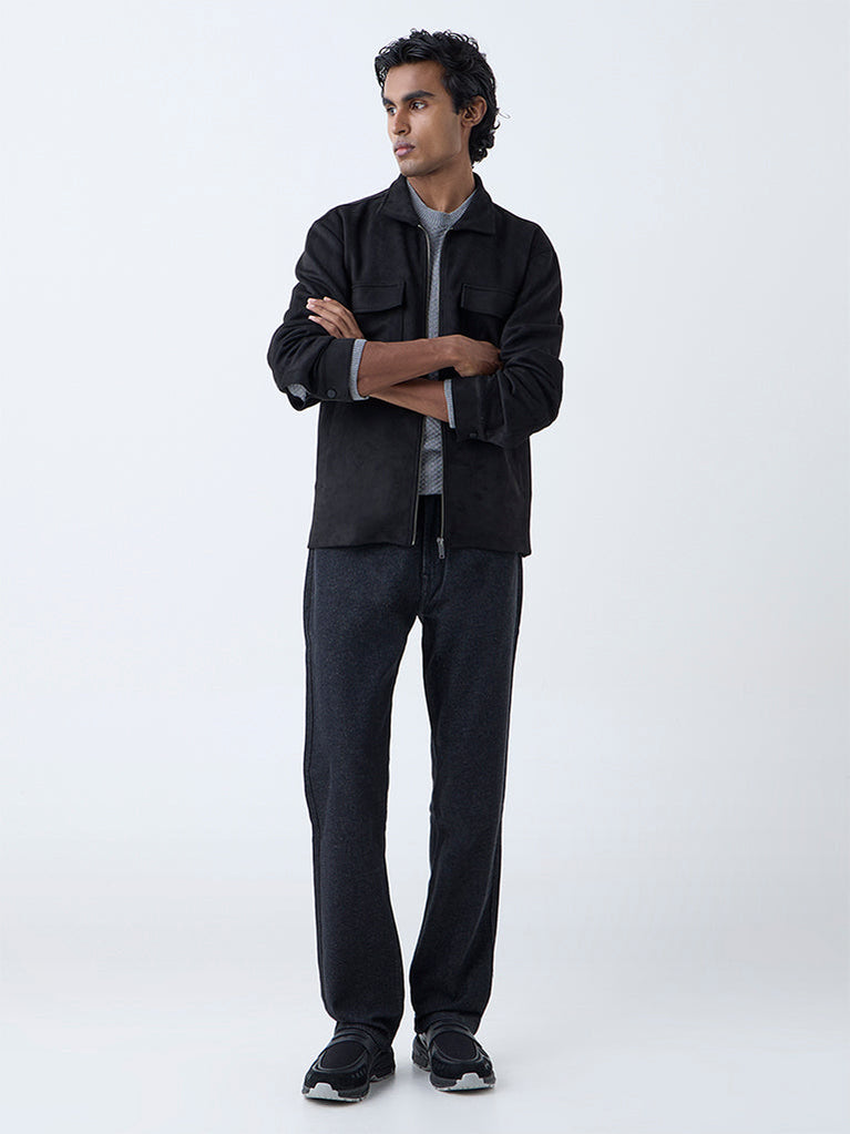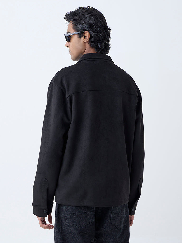 Ascot Black Solid Relaxed-Fit Suede Jacket