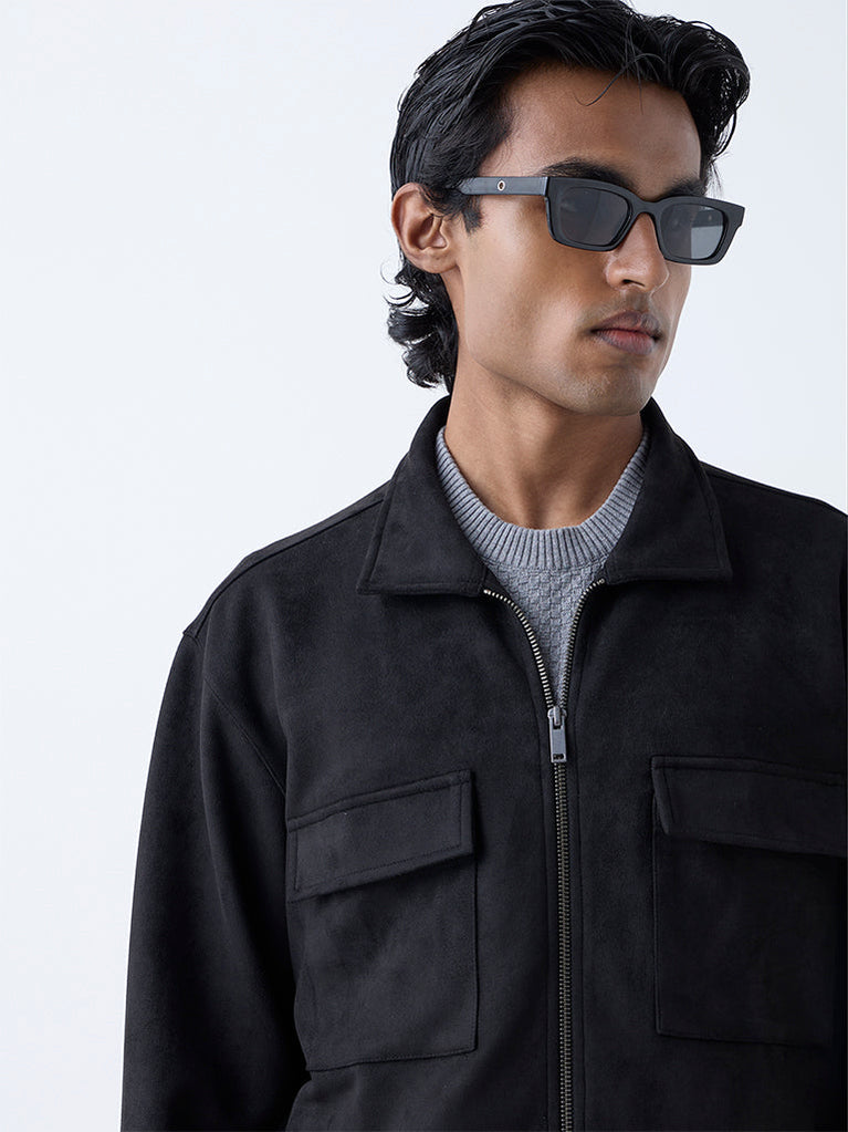 Ascot channels urban sophistication with this black suede jacket, where tactile richness meets modern utility. Styled with a sharp collar, zipper placket, and dual chest pockets, it balances structure and ease for a versatile smart-casual layer.