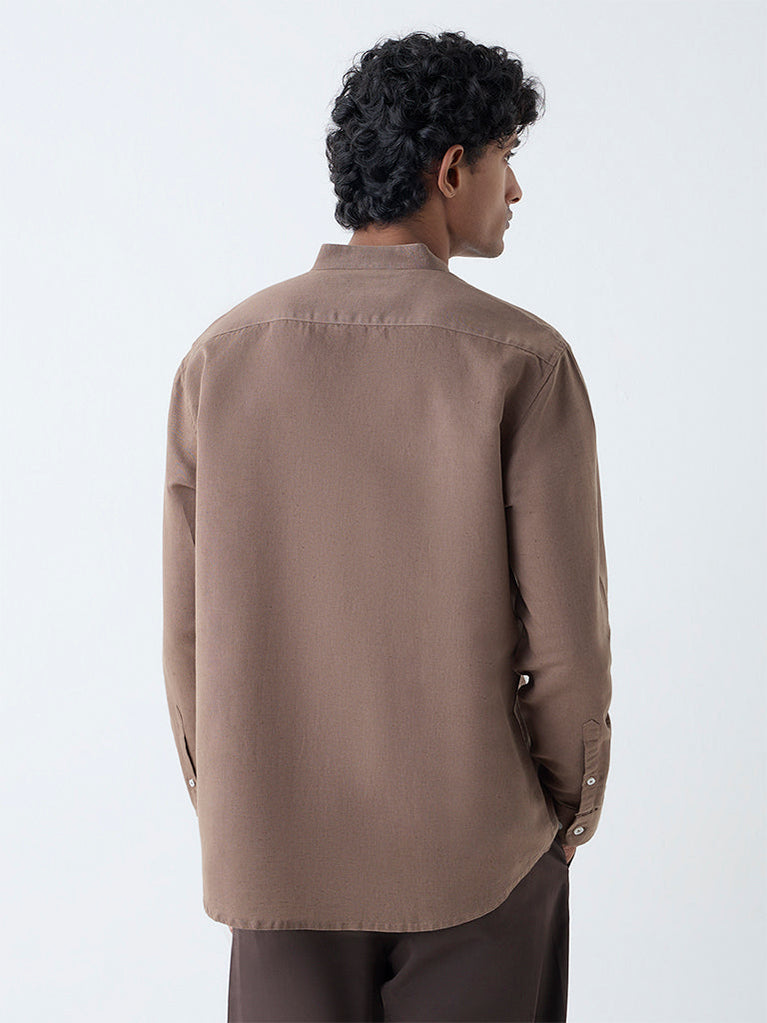 Ascot Brown Solid Relaxed-Fit Linen-Blend Shirt
