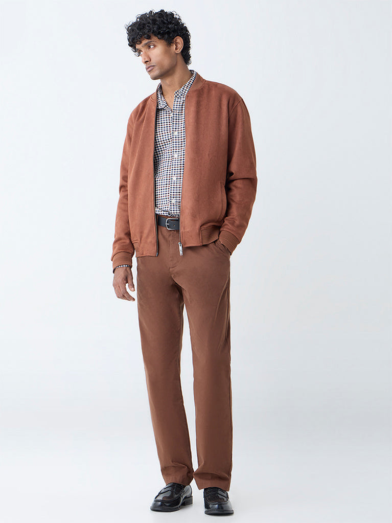 Ascot Tan Solid Relaxed-Fit Suede Jacket