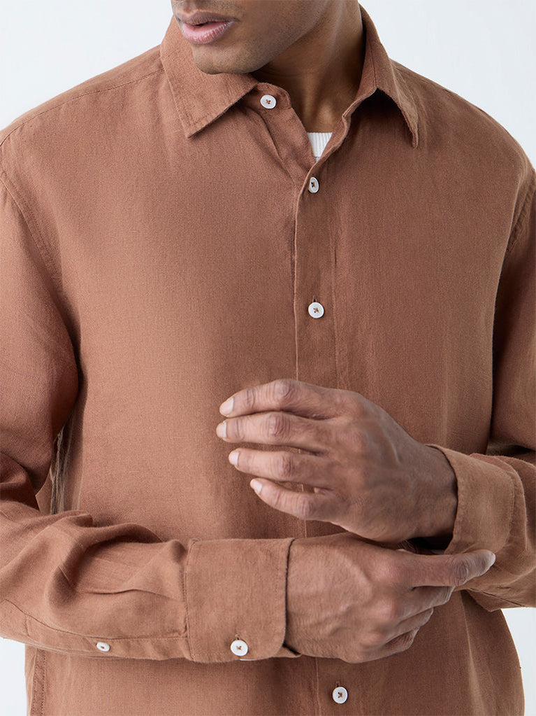Ascot Rust Solid Relaxed-Fit Linen Shirt