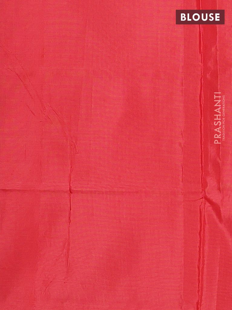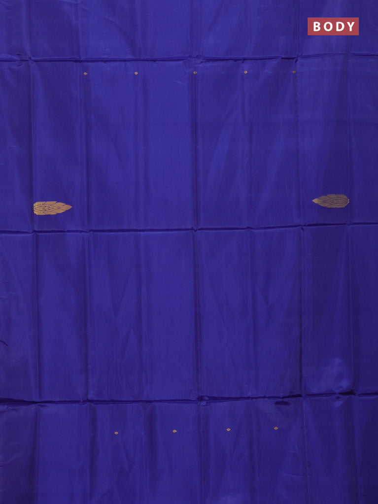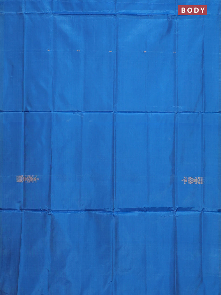Banana pith saree blue and red with thread woven buttas in borderless style