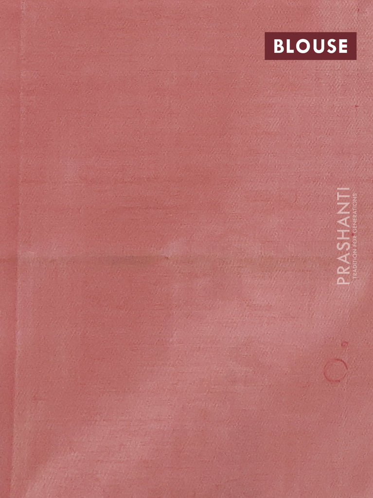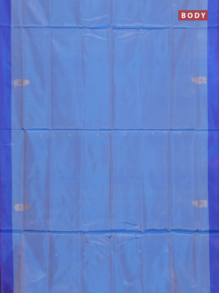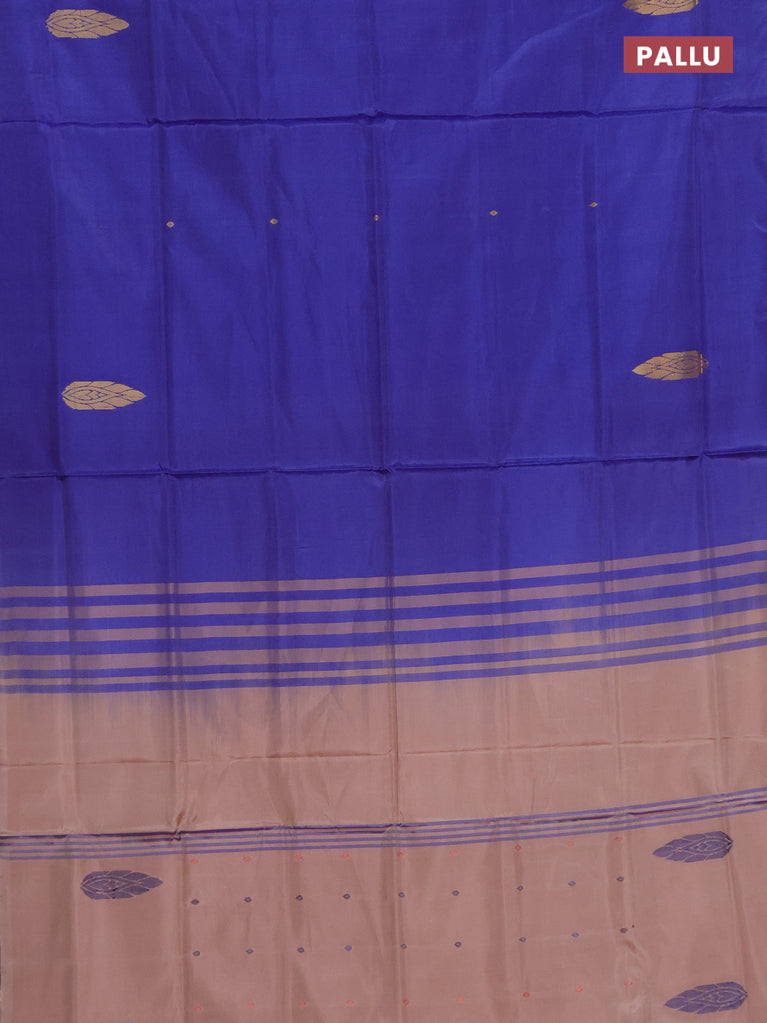 Banana pith saree blue and pastel peach shade with thread woven buttas in borderless style