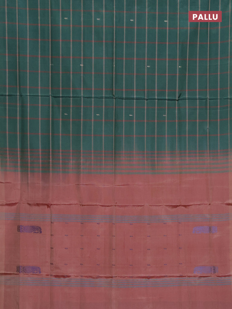 Banana pith saree bottle green and pastel maroon with allover checked pattern and piping border