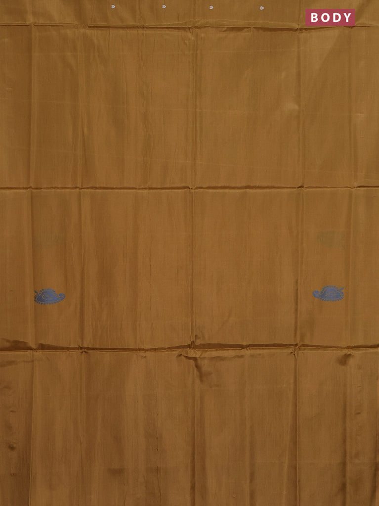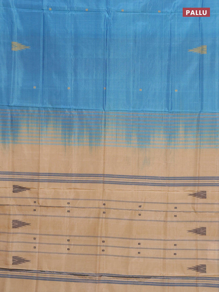 Banana pith saree cs blue and sandal with thread woven buttas in borderless style