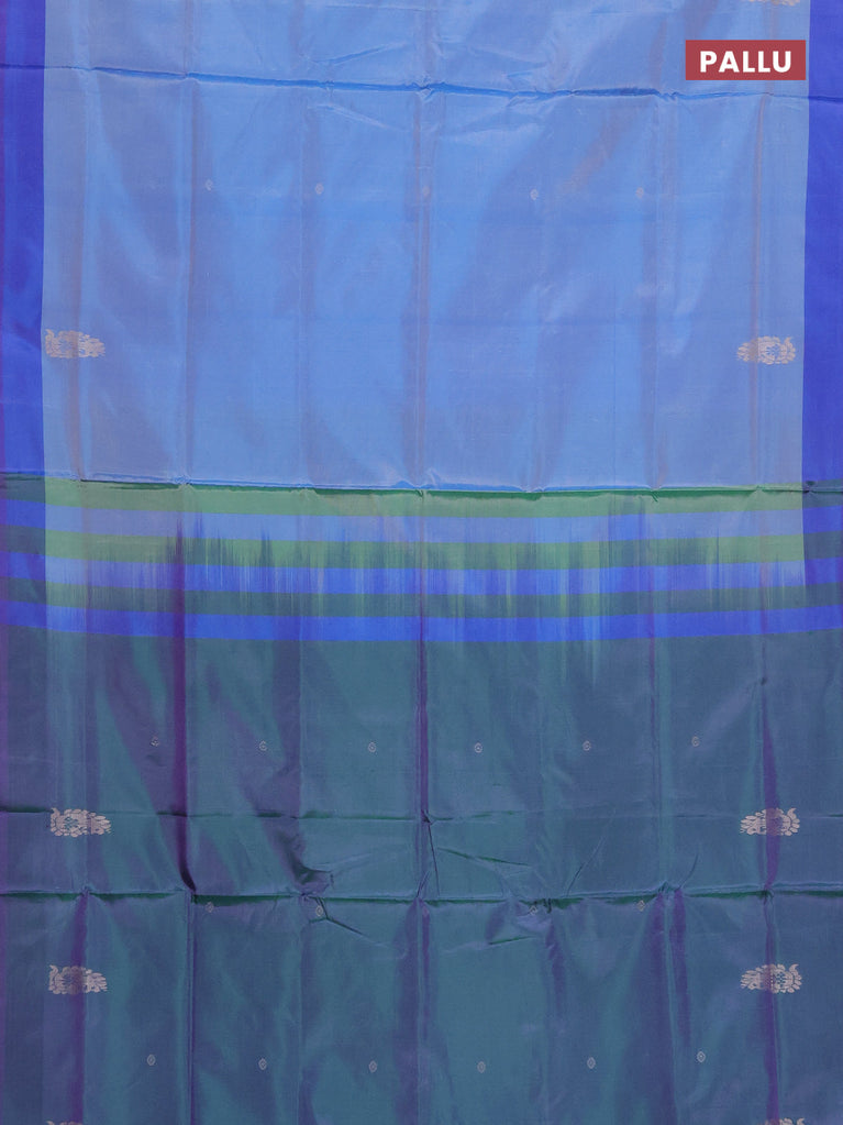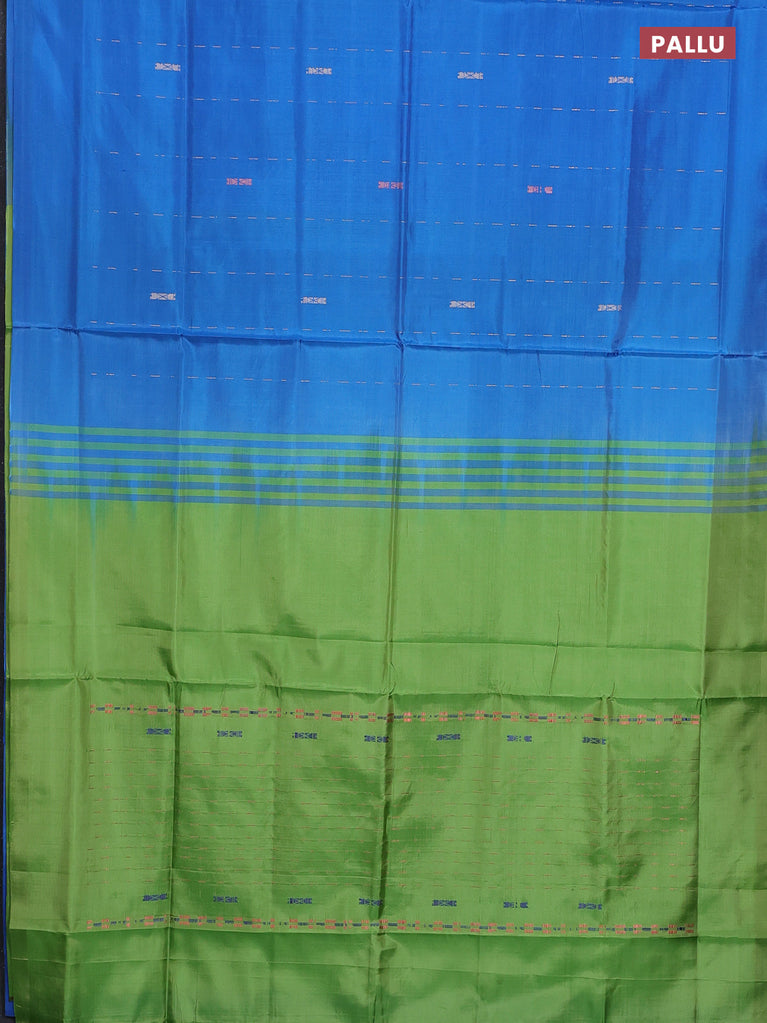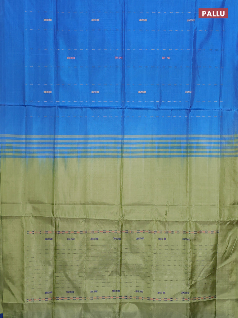 Banana pith saree blue and light green with allover thread woven butta weaves in borderless style