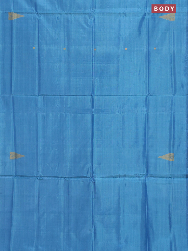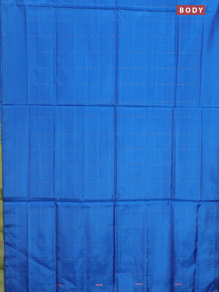 Banana pith saree blue shade and dual shade of greenish violet with thread woven buttas and contrast border