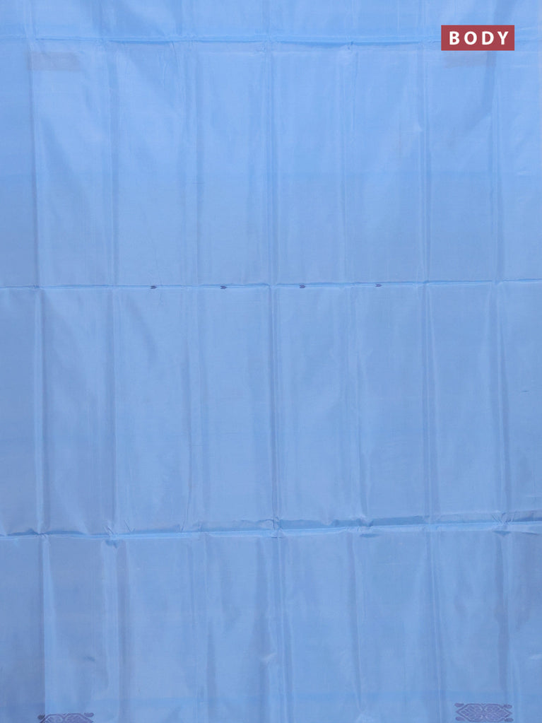 Banana pith saree light blue and black with thread woven buttas in borderless style
