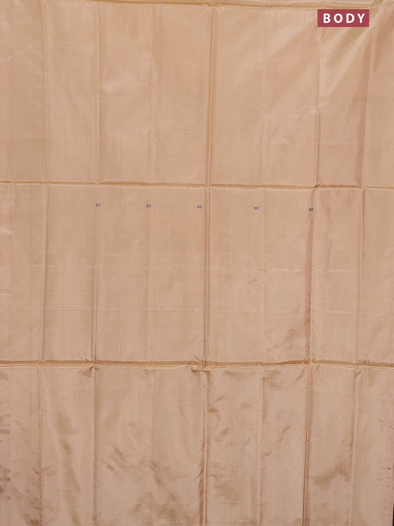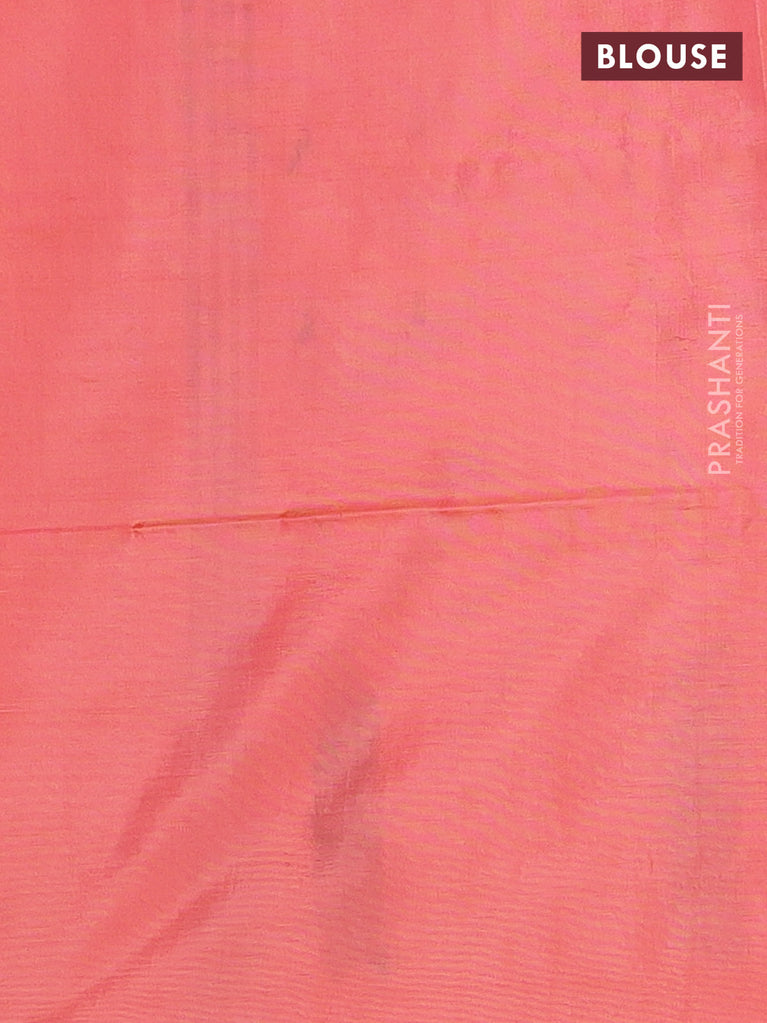 Banana pith saree peach shade and blue with thread woven buttas in borderless style