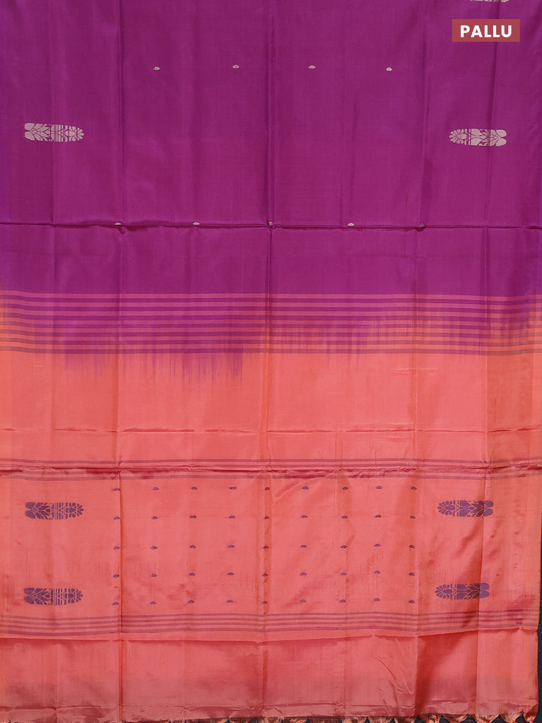 Banana pith saree purple and peach orange with thread woven buttas in borderless style