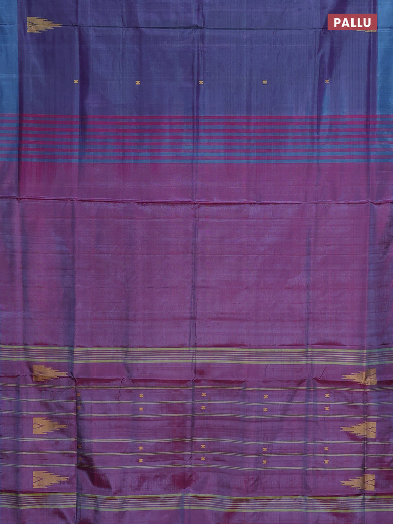 Banana pith saree purple and orange with thread woven buttas in borderless style