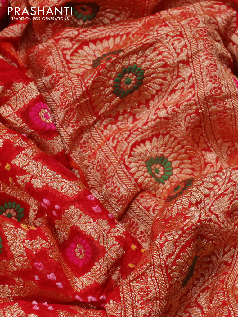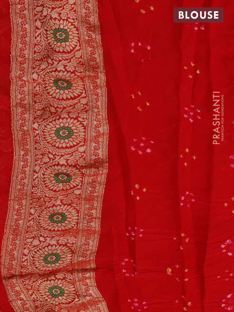 Banarasi georgette saree red with bandhani prints & mina weaves and woven border
