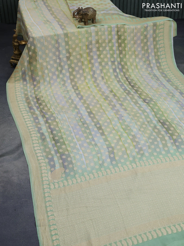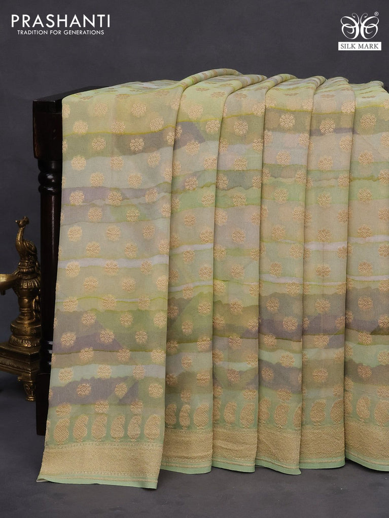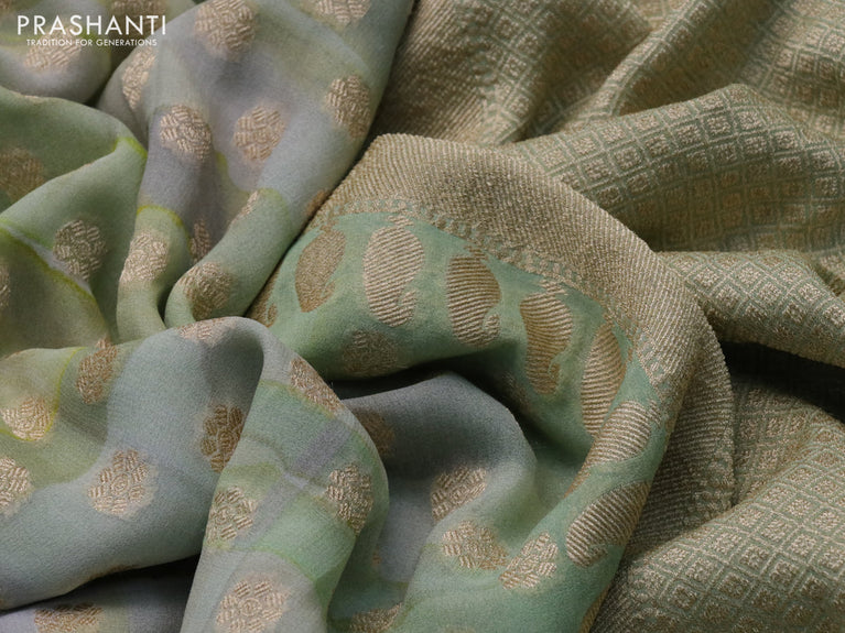 Banarasi georgette silk saree grey and mild pista green with allover zari woven buttas and zari woven border
