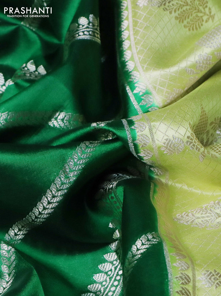 Banarasi poona silk saree green and pista green with silver & gold zari woven buttas and zari woven border