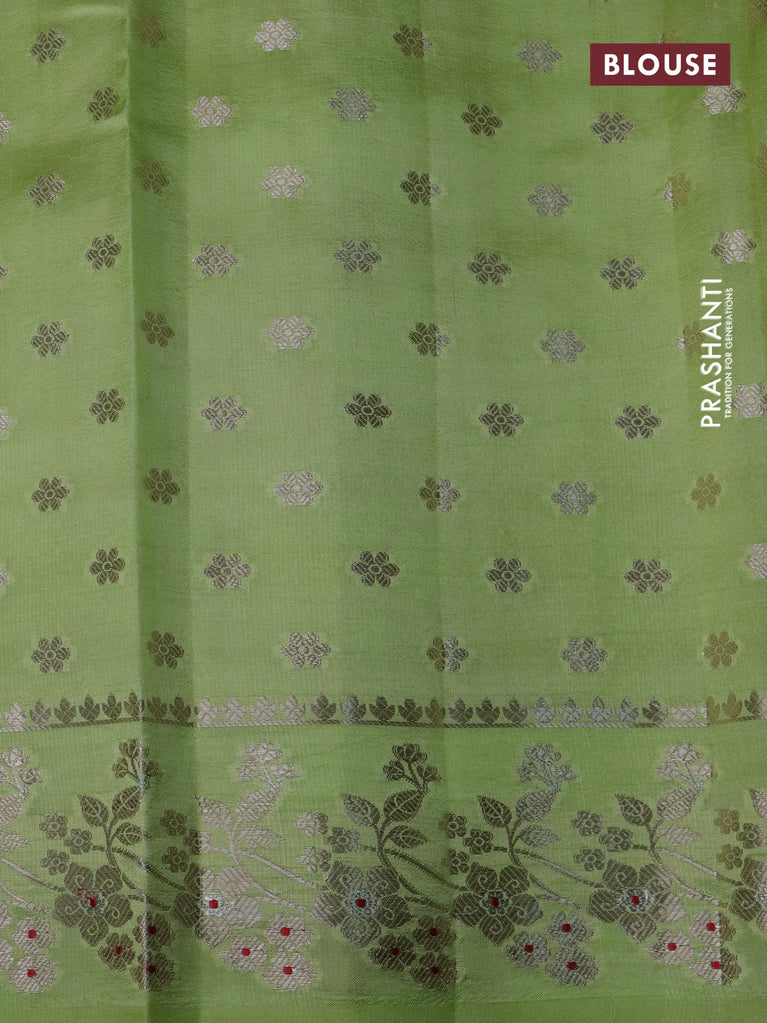 Banarasi poona silk saree green and pista green with allover zari woven mina weaves and zari woven simple border