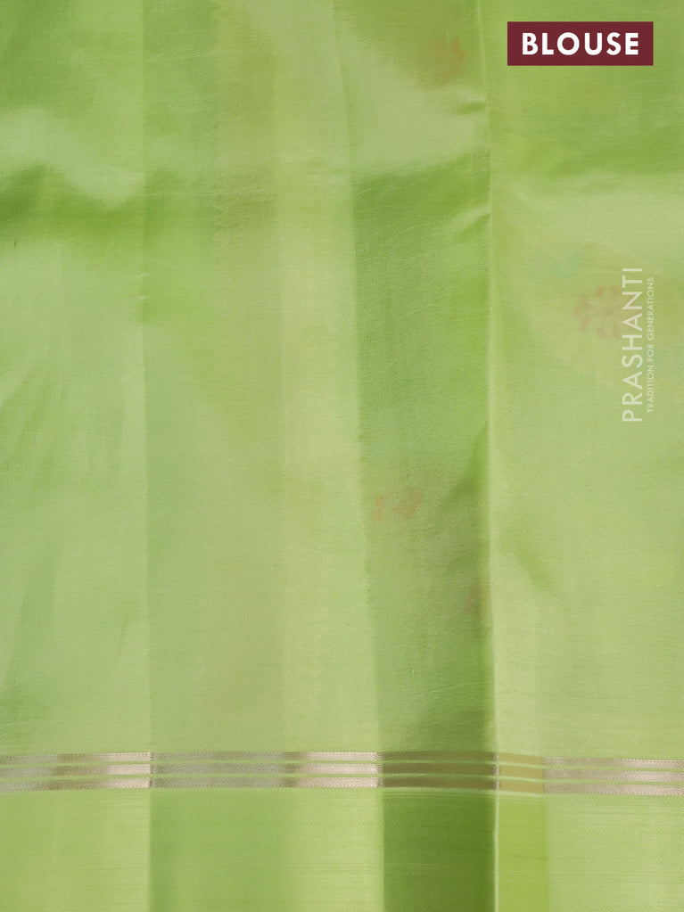 Banarasi poona silk saree green and pista green with silver & gold zari woven buttas and zari woven border