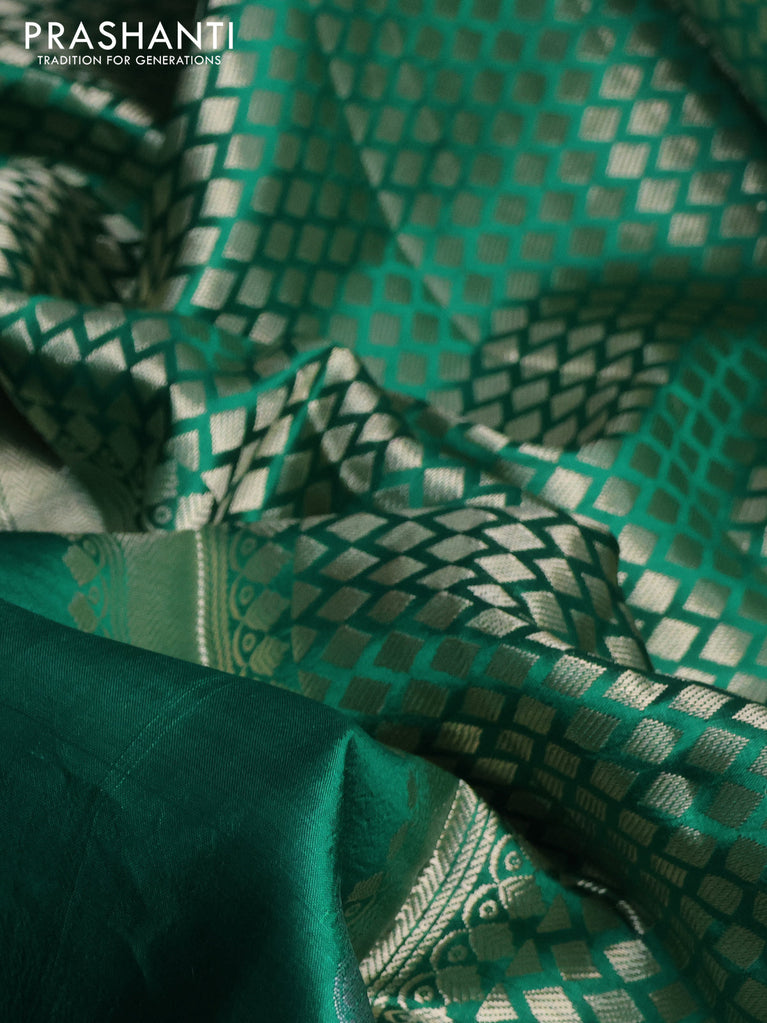 Banarasi poona silk saree green and light green with thread & zari woven geometric buttas and zari woven simple border